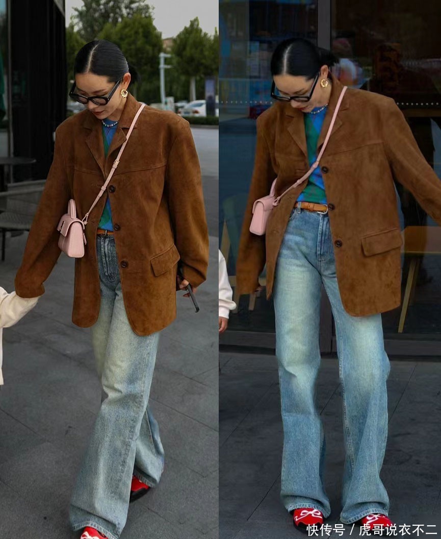 比较于其他或是装嫩、或是太不显眼的减龄元素来说,牛仔裤显年青的后果是遥遥当先的,带有比较浓郁的悠闲感,穿上以后又前锋又显活力,完全不具有穿搭难度。