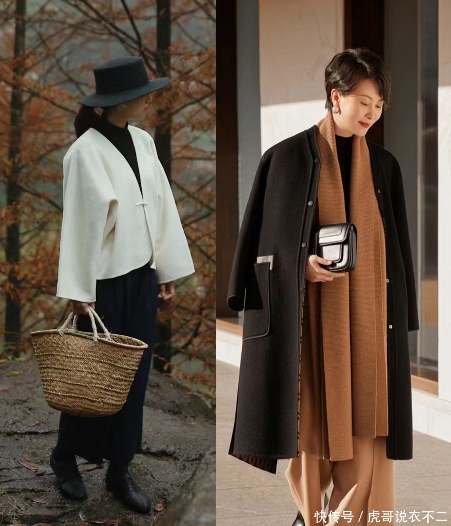 上图这两身穿搭中,就行使了比较经典的色彩组合,无论是口舌配、或是黑棕配,都是一些比较基础日常的色彩,但组合在一齐,却展现出了十分合作耐看的不雅感,值得中年女东谈主行使。