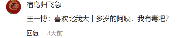 比如有位叫“宿鸟归飞急”的网友装作王一博的口吻说:“心爱比我大十多岁的大姨,我有毒吧?”还有东说念主说:“平方情况下一个大小伙子谁齐不会,又不是没东说念主要。”